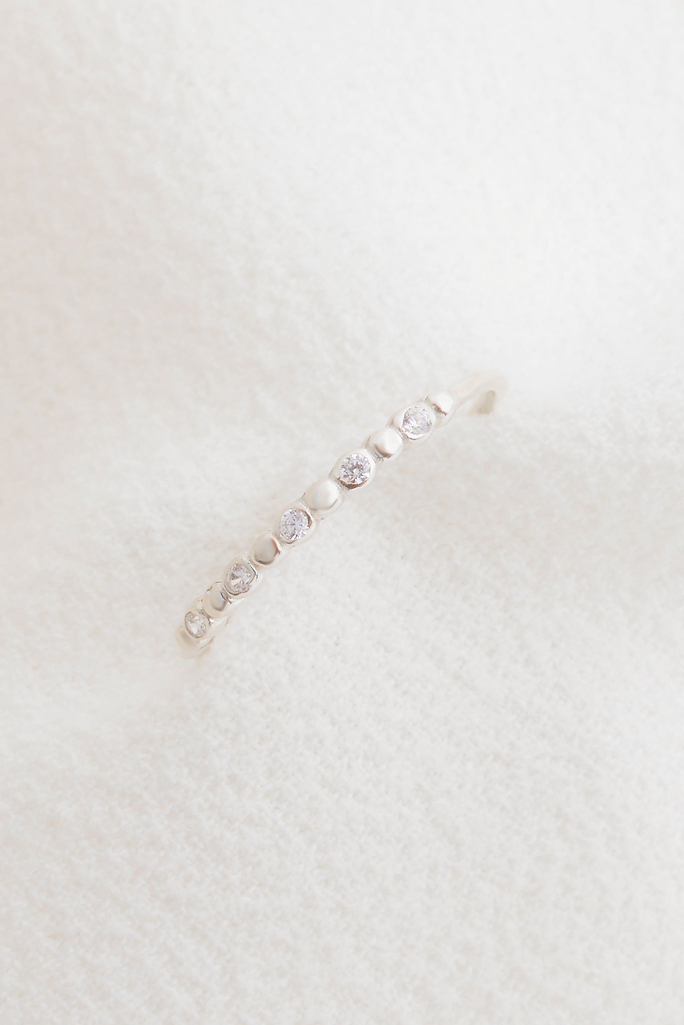 Anillo de Plata 925 que se distingue por su diseño delicado y minimalista. Compuesto por mini círculos que alternan entre bolitas de plata y cubics zirconias engarzados, logra un equilibrio perfecto entre lo sutil y lo elegante. Su tamaño fino lo convierte en una joya cómodo y versátil, ideal para quienes prefieren joyas discretas pero con un toque de brillo especial.