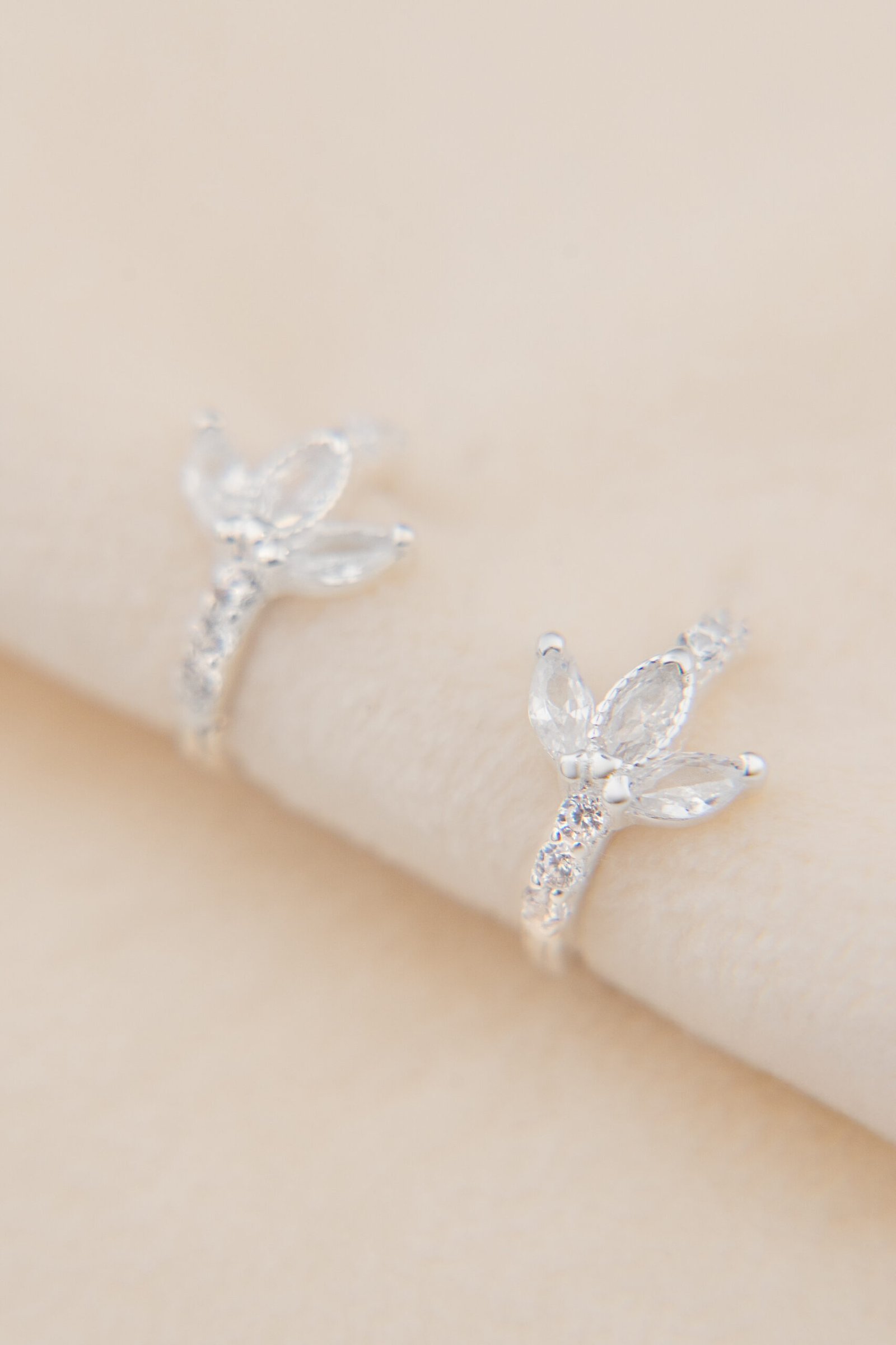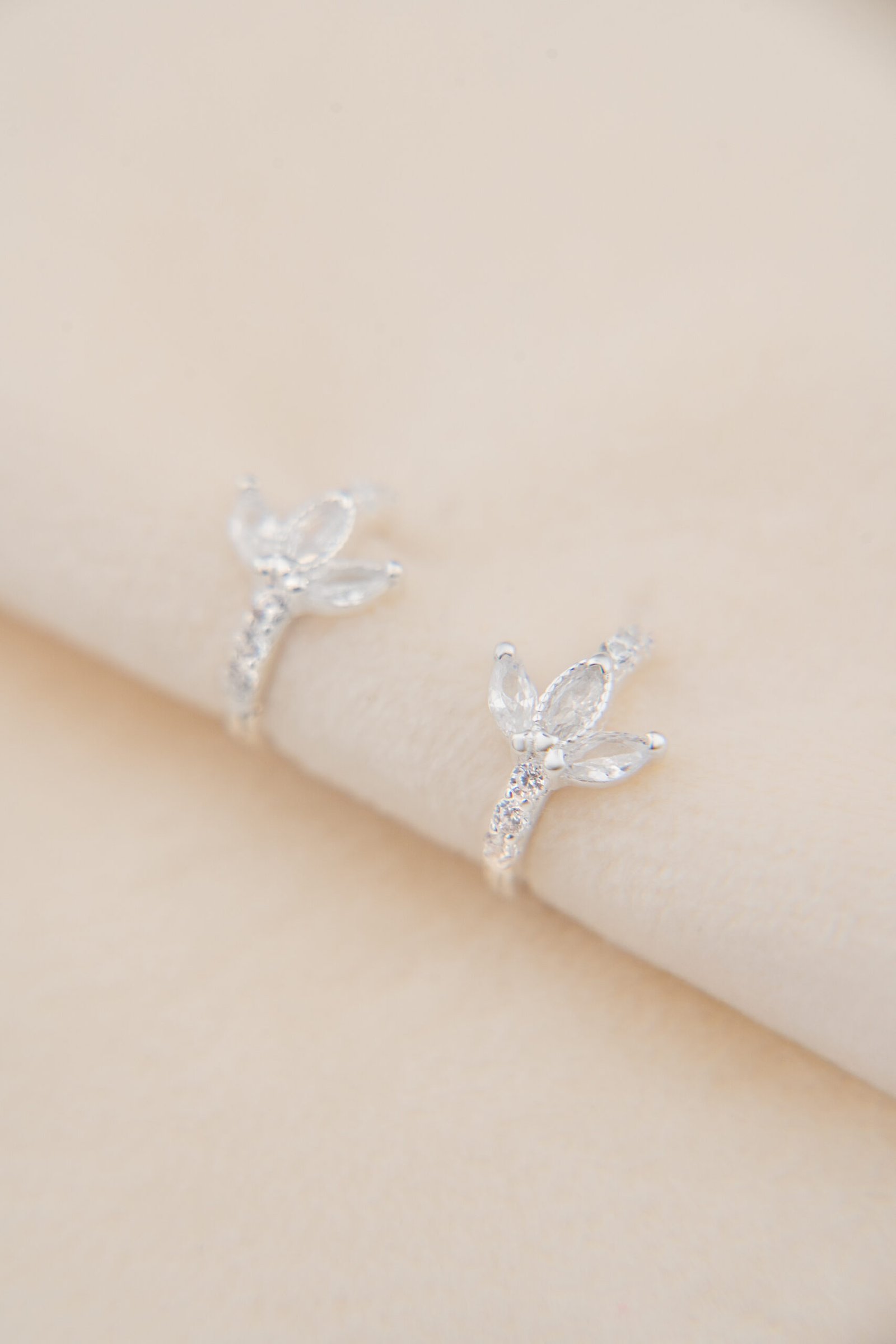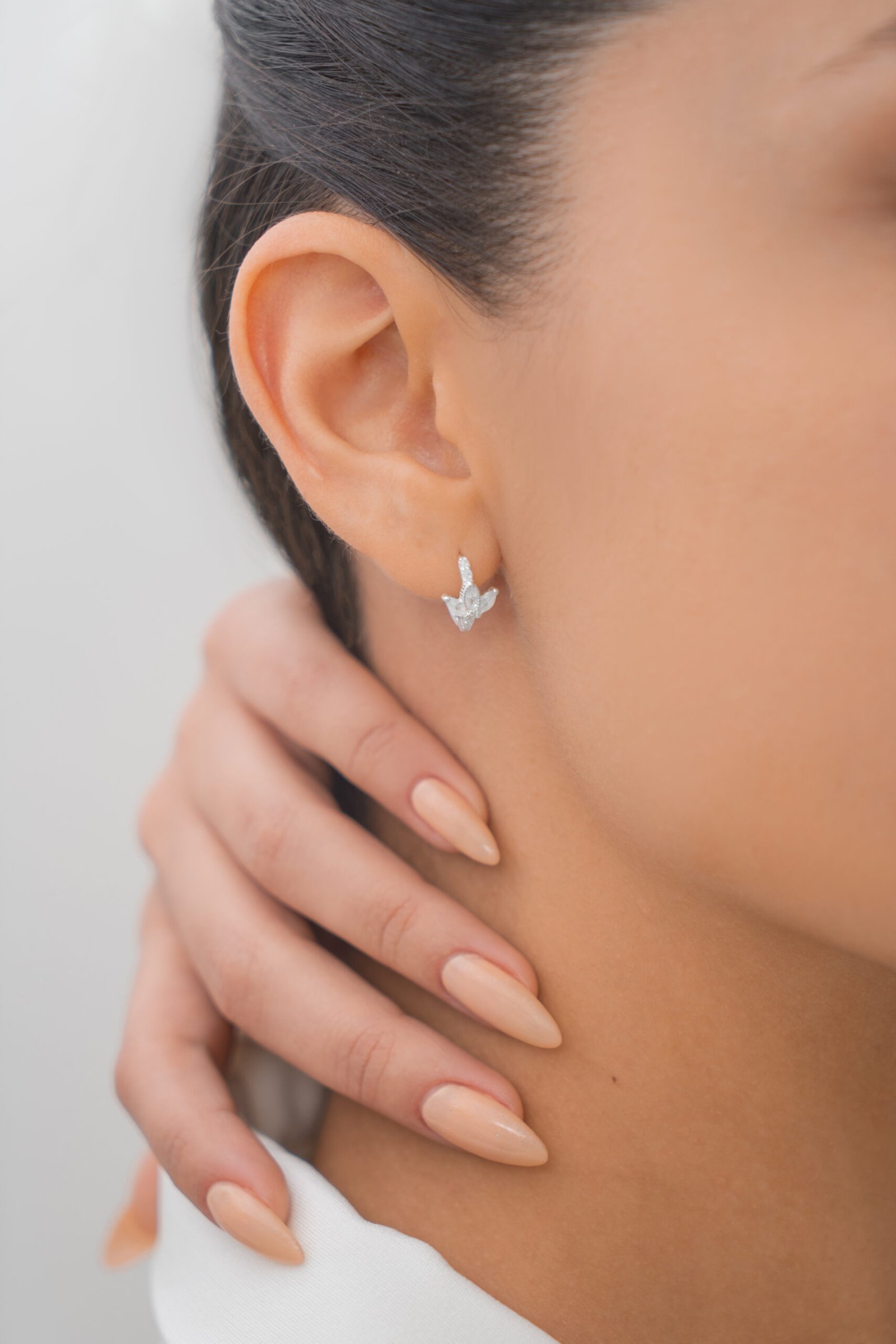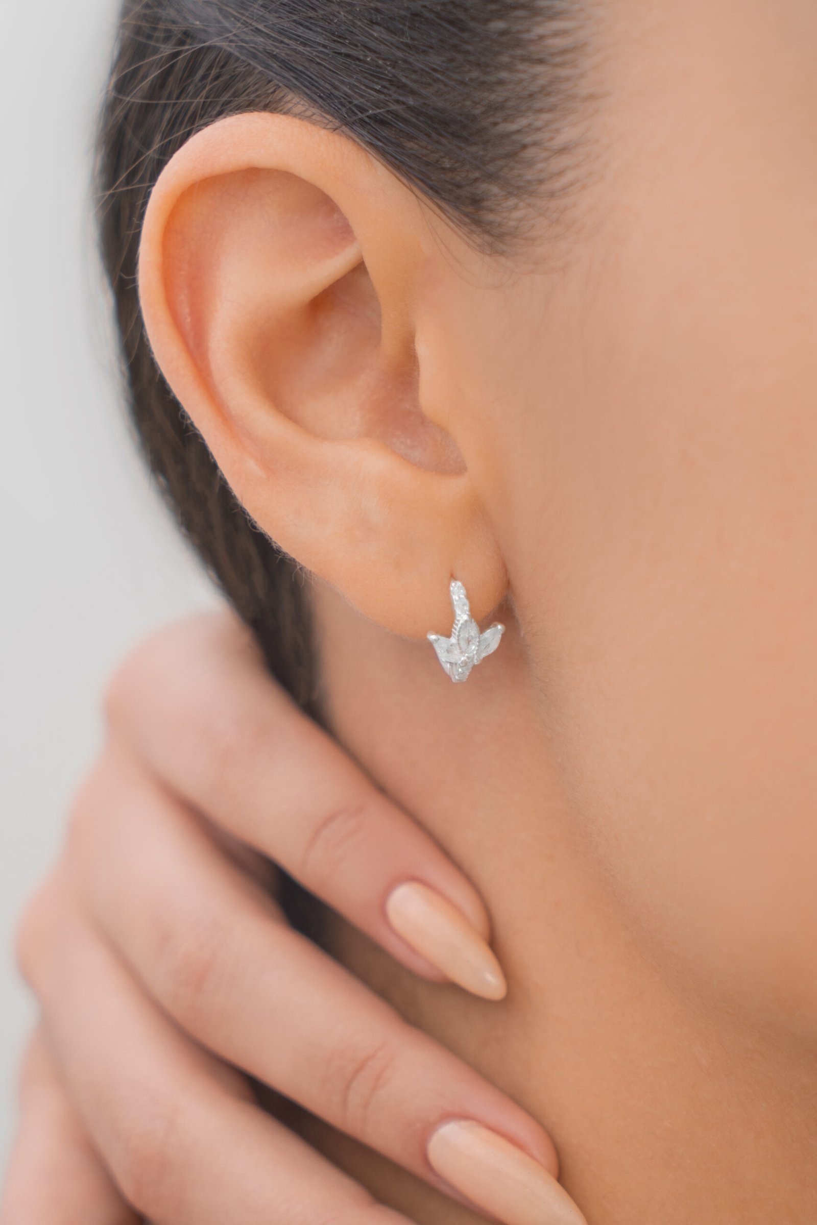 Argollas de Plata 925 y cubics zirconias. Su diseño combina tres cubics zirconias corte navet, formando una figura delicada, ideal para quienes disfrutan de los detalles con personalidad, son el equilibrio perfecto entre brillo y elegancia.