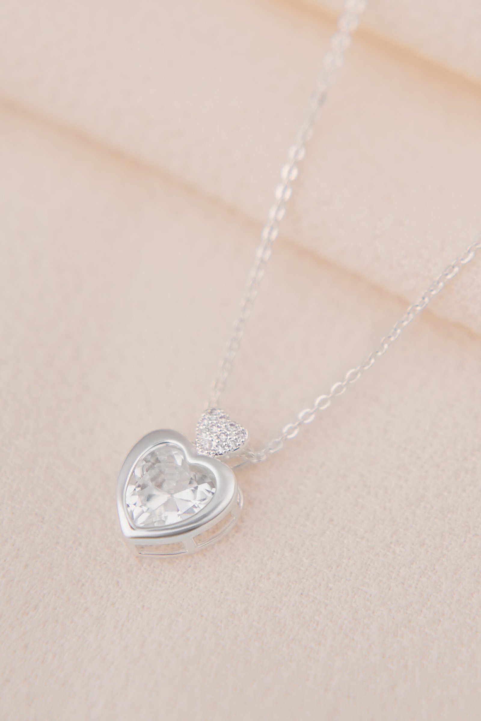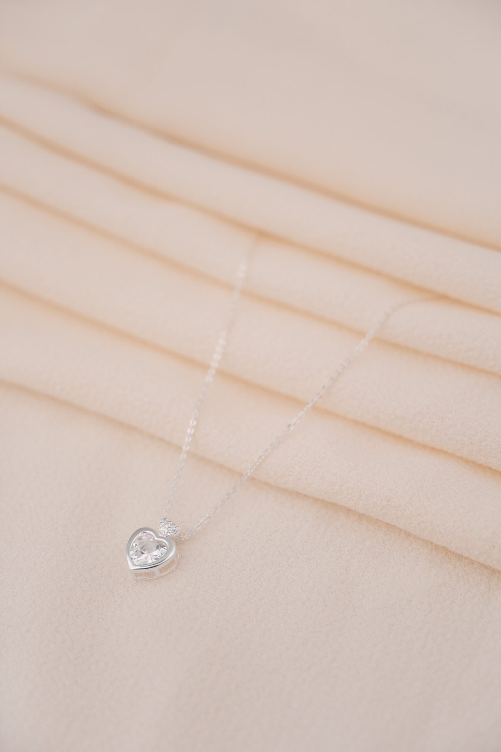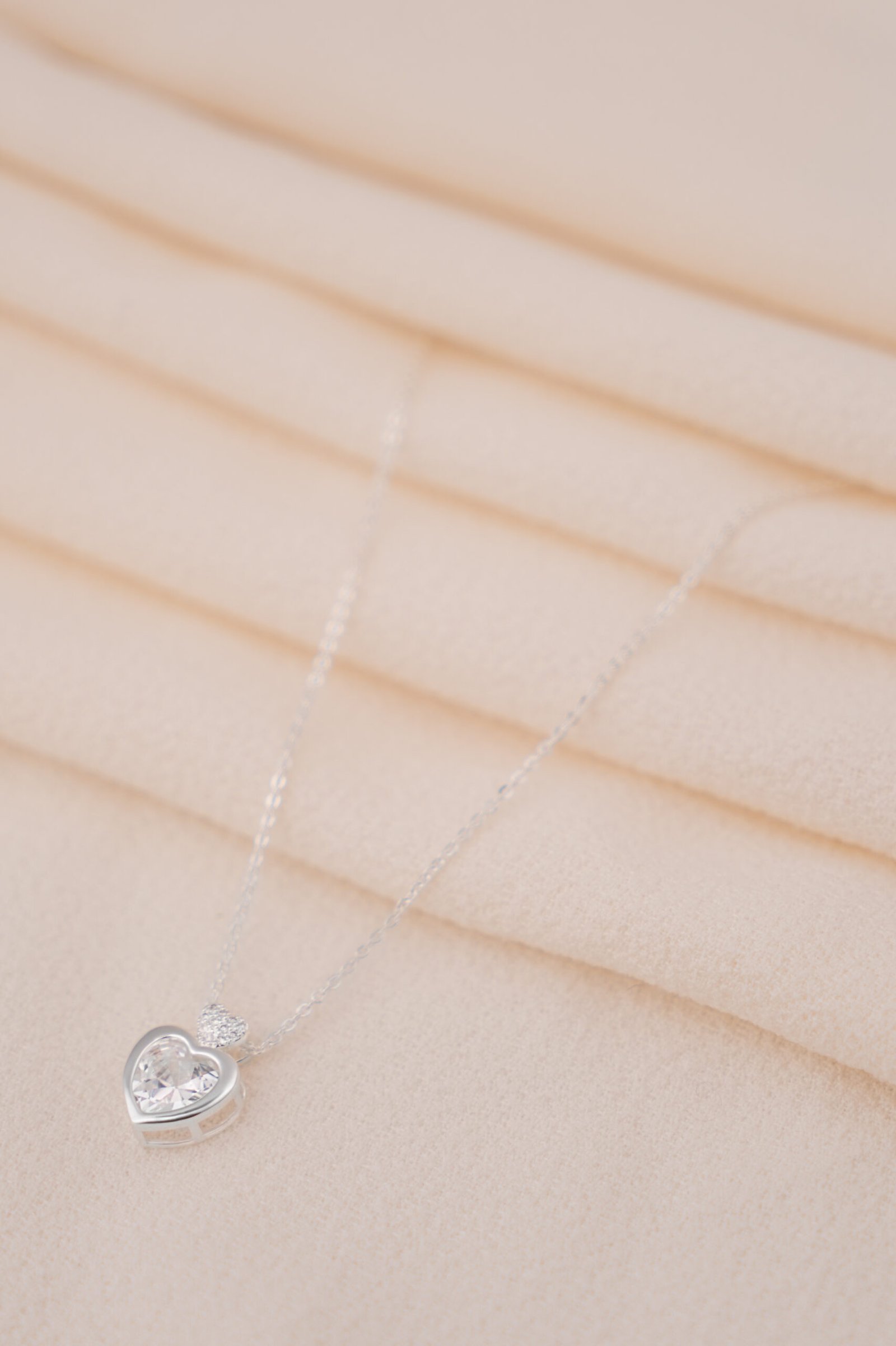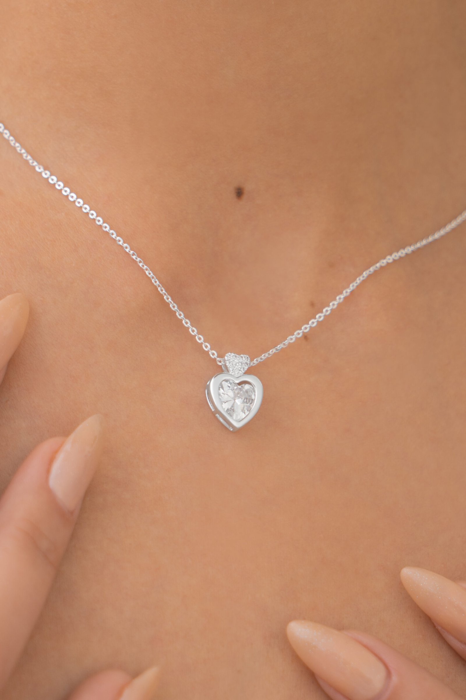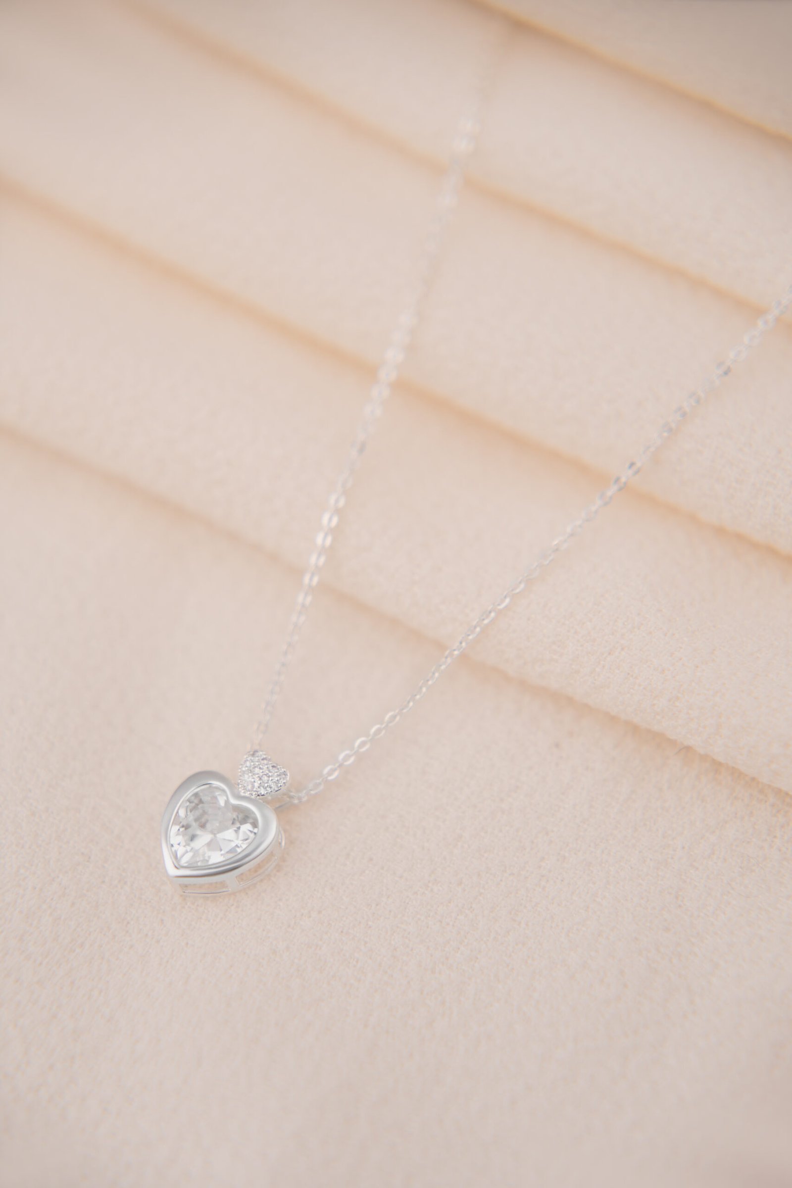 Conjunto de acero blanco moderno y delicado, formado por una cadena forcet redondeada y un dije único en forma de corazón.