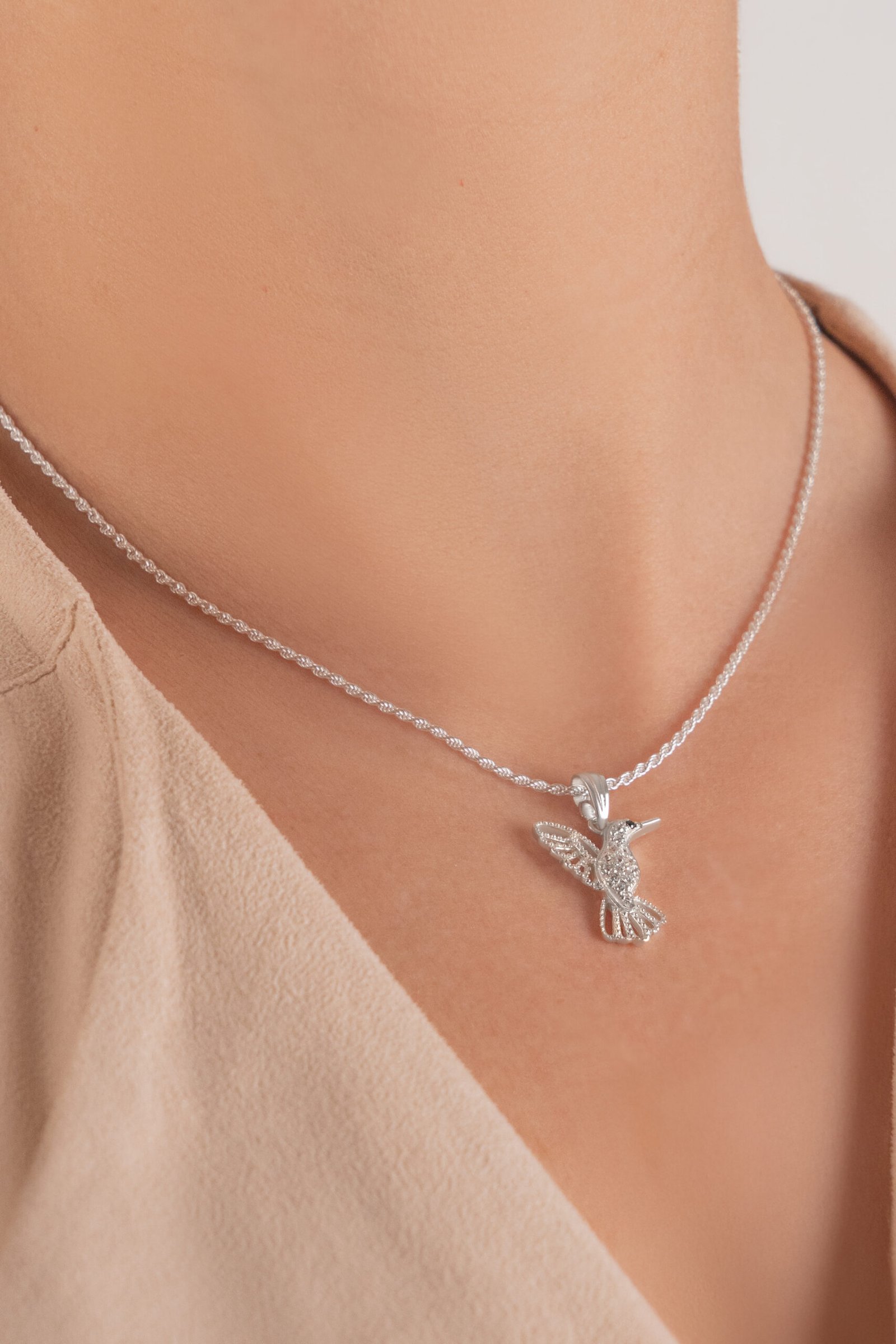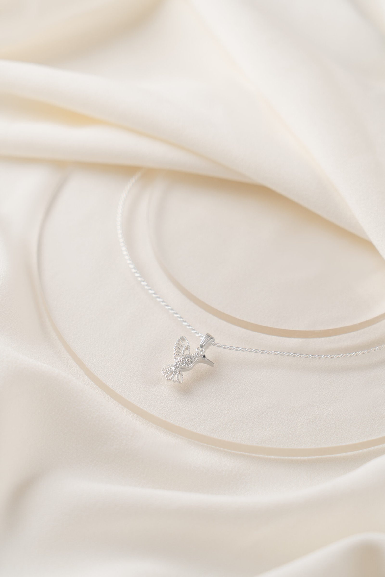 Cuenta la leyenda que cuando un colibrí nos visita, nos susurra que las almas de quienes amamos están bien. Este dije evoca la memoria de los que nos siguen acompañando, convirtiéndose en una joya que trasciende lo estético para transformarse en una tan única como la historia que atesora.